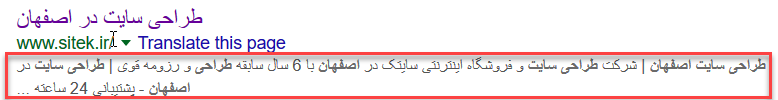 منظور از توضیحات متا یا متا دیسکریپشن متنی هست که برای نمایش داده شدن در قسمت توضیحات گوگل نوشته شده است (مانند تصویر زیر).