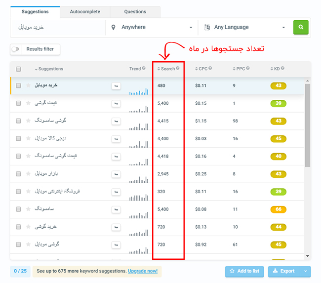 فوقالعاده است، به معنای اینکه ماهانه 7000 نفر میل به خرید موبایل دارند و در گوگل به دنبال مکانی برای خرید موبایل میگردند. قطعا شما هم برایتان بارها پیش آمده است که چیزی را در گوگل جست و جو کنید و همانطور که خودتان هم به چشم دیدهاید، بیش از 80% سرچ کنندگان در همان صفحۀ اول نتایج جسجو جواب خود را یافت میکنند. خیلی خیلی کم پیش میآید که یوزری در صفحات دوم و سوم به دنبال جواب باشد.