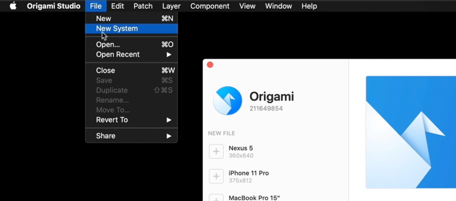 نرم افزار اریگامی استودیو ساخته طراحان فیسبوک می باشد و با دیگر نرم افزار های رابط کاربری متفاوت است. با توجه به ابعاد بزرگ فیسبوک و متنوع بودن صفحات نیاز این شبکه اجتماعی به سیستمی برای مشارکت در طراحی بیشتر شد. استفاده از لایهها، Patch و اینتراکشنها کمک میکند به راحتی یک ورکفلو برای اپلیکیشنها موبایل یا وب بسازید.