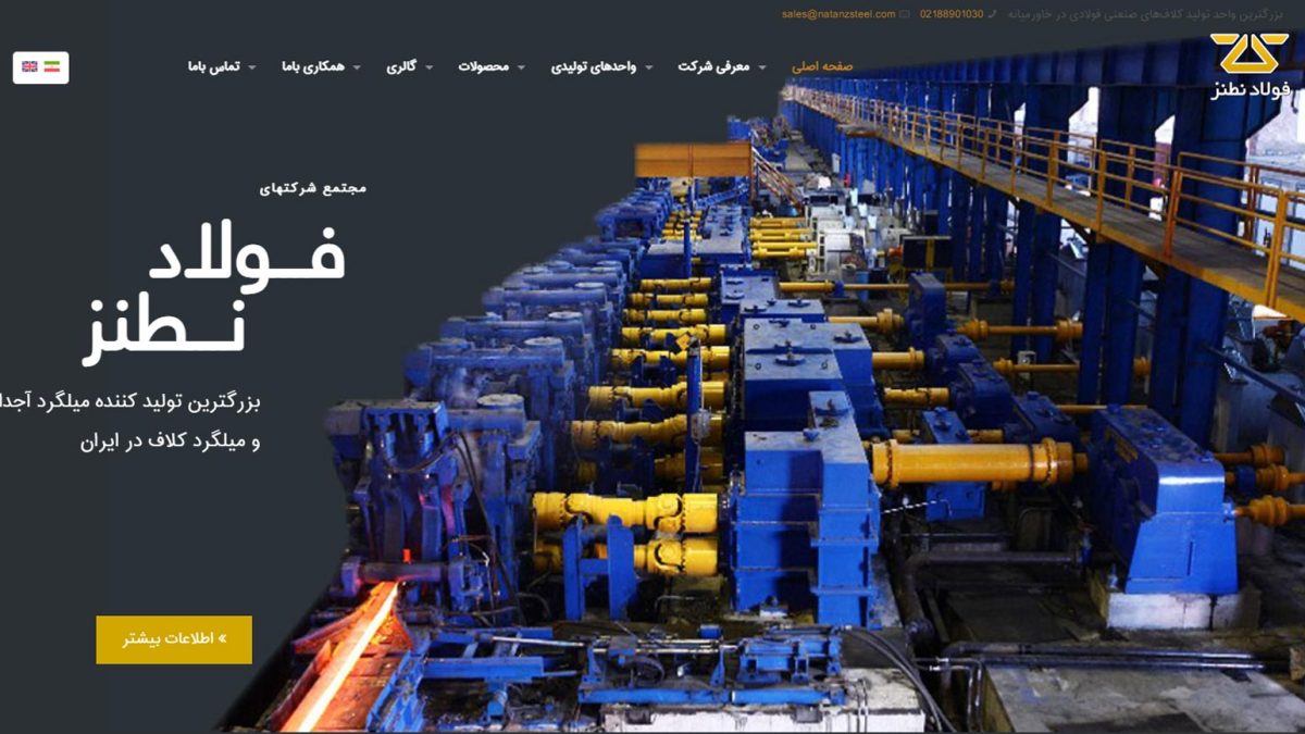 طراحی سایت ذوب آهن نطنز1403-02-05 طراحی سایت فروشگاه اینترنتی ابزار اصفهان1401-04-20طراحی سایت مجتمع فولاد نطنز مشتریمجتمع کارخانجات فولاد نطنزوبسایتمشاهده وبسایتمشاهده وبسایتبزرگترین واحد تولید کلاف های صنعتی فولادی در خاورمیانهShare3مطالب مرتبط1403-02-05 طراحی سایت کاراندیش صنعتاطلاعات بیشتر1403-02-05 طراحی سایت اریس فولاد سپاهاناطلاعات بیشتر1403-02-05 طراحی سایت اعلا روغن سپاهاناطلاعات بیشتر
